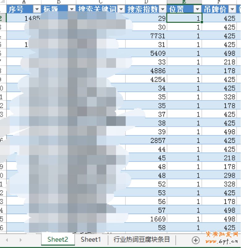 方法二,下面這張圖是行業TOP500詞豆腐塊數據表