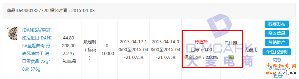 因此店鋪聚劃算活動的選款,大麥電商運營人員選擇在曲奇餅干中頗有知名度的皇冠丹麥曲奇作為活動報名款。進行聚劃算商品團的報名。
