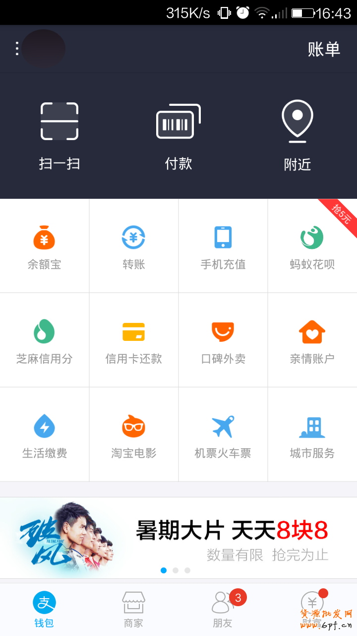 1、登錄支付寶首頁找到花唄服務(如花唄不支持用戶則不顯示入口),點擊【開通】;