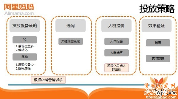 您將創意分開設備來進行優化測試;在出價方面,我們將移動溢價比例擴大到了400%,且開通了寶貝維度單獨移動溢價功能幫您達到無線端重點推廣