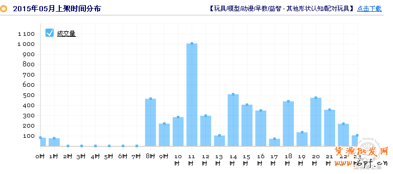 通過生意經查看“ 玩具/模型/動漫/早教/益智”類目近3個月的數據,上午和下午的時間段,行業的成交量是比較好的,尤其是早上11點的時候是高峰期,那么我們店鋪可以依據這些數據做好寶貝上下架的調整,直通車也可以配合店鋪在這個時間段加大力度測試。