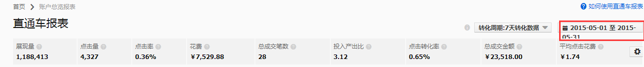 以上分別是五月份和六月份30天從一周轉化數據來看的整體情況,其中展現量提升了很多,平均點擊花費控制在兩塊以內,7月份的平均點擊花費降低了0.5元,這就要在關鍵詞上做優化,提高關鍵詞質量分,獲得在無線端展示的要求,如果沒有手機標示,則說明該關鍵詞質量不符合在無線端位置展示的要求,首先要優化關鍵詞質量分,做好創意圖片,提高關鍵詞點擊率、完善寶貝屬性、做好售后給買家好的購物體驗。繼而進一步調節出價,獲得更多的無線流量,而且要及時尋找市場上的熱門搜索詞添加到直通車里,除了淘寶下拉框和“您是不是想找”,還有流量解析里面的推廣詞表下載,可以選擇性的添加進去,把質量分低的和點擊率低的關鍵詞刪掉,五月份的關鍵詞不一定適合六七月份,所以關鍵詞是需要優化和更新的。