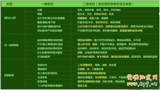 從類目特性來看,預測5.1之前成交增加的行業主要是服裝、母嬰、運動戶外、數碼、家居建材、家電、文化玩樂、虛擬這八大行業。每個類目下成交的寶貝類型可以從下表中查看。