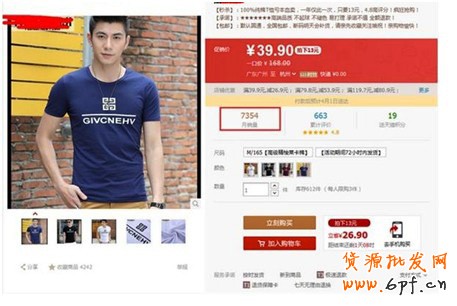 首選的平臺當然就是折800了。比較適合選擇這個平臺的商品,是一些性價比比較高的寶貝。就以T恤為例,13元價格的包郵,4天銷量就突破了7000單。