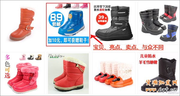 (3)主圖設計:主圖是買家對寶貝的第一印象,所以,一定要格外醒目特別,尤其是在搜索頁面,圖片更要清晰、賣點突出,同時考慮下周邊同行產品的主題,盡量跟他們不一樣。這樣的寶貝才能在第一時間吸引買家的目光。如圖: