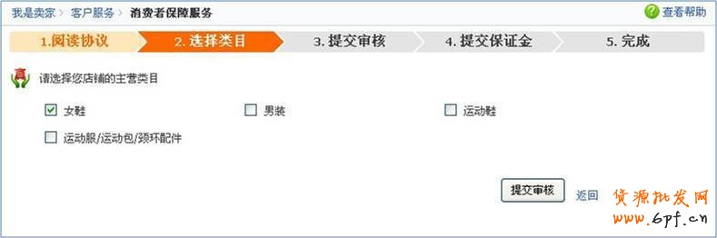 3.選擇您店鋪的主營類目(如列表中沒有您需要的類目,可能是該類目未參加假一賠三或該類目申請時間未到,請謹慎勾選。若主營類目申請錯誤須等待一個月才能重新申請)