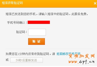 提交之后會發送一個驗證碼到手機上,輸入驗證碼如下圖