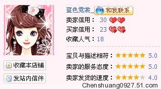 BUT 我每賣出一件寶貝都很用心,也都很開心。小店主要經營國珍牌保健品和化妝品,初期為了增加人氣也賣過自己閑置的寶貝。賣出的第一件寶貝是我自己喜歡的一款超可愛的HELLO KITTY的包包,從賣出第一件開始,我就為買家做好服務,精心的包裝,雖然買家沒有給我留下什么話,但能收到第一個好評我已經很開心啦。