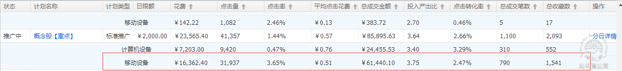 1、在推廣前期主要是做好點擊率,培養關鍵詞的質量得分,降低ppc去提高轉化;在剛開始的時候可以加大移動端推廣力度,多添加有手機標識的關鍵詞進行推廣,加大無線端的折扣, (利用移動端的高點擊率來培養寶貝的質量得分,在短時間內完成基礎數據的搭建)。