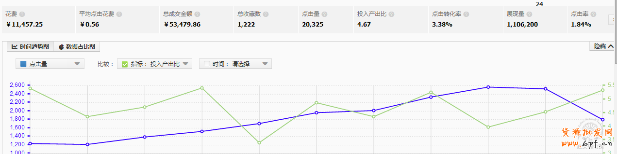 Ppc經過幾天的波動之后就一直穩定并且是低于行業市場平均出價的,無線端的流量在穩定上升,占比最多,主要的操作是避開pc端關鍵詞的競爭,加大無線端推廣測試;引入更多的無線端流量進行測試效果反饋,在關鍵詞的質量得分普遍比較高的情況下,拉低時間折扣的同時加大無線端和站外的投放力度,控制pc端的流量同時,加大無線端流量促進轉化,拉低整體的ppc,提高點擊率,引進更多的流量。