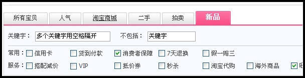 (1)“搜索結果頁面”和“類目寶貝列表頁面”中,有新品選項,對某個類目某個關鍵詞下的新品進行聚合展現。