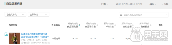 首先介紹一下分享的店鋪,店鋪是賣皮草的,數據來源于今年7月份。眾所周知,暑期天氣炎熱,皮草實在不能再冷清了。照例,小編還是要分享一下數據(當天單款數據):