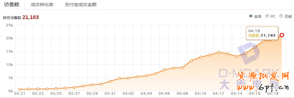 2、查看最近產品訪客轉化趨勢,選定的產訪客和成交趨勢是不斷在往上漲的,也就是說訪客增加,轉化