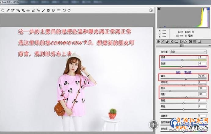 這一步的主要目的是把色溫和曝光調正常,我這里用的是camera raw9.0