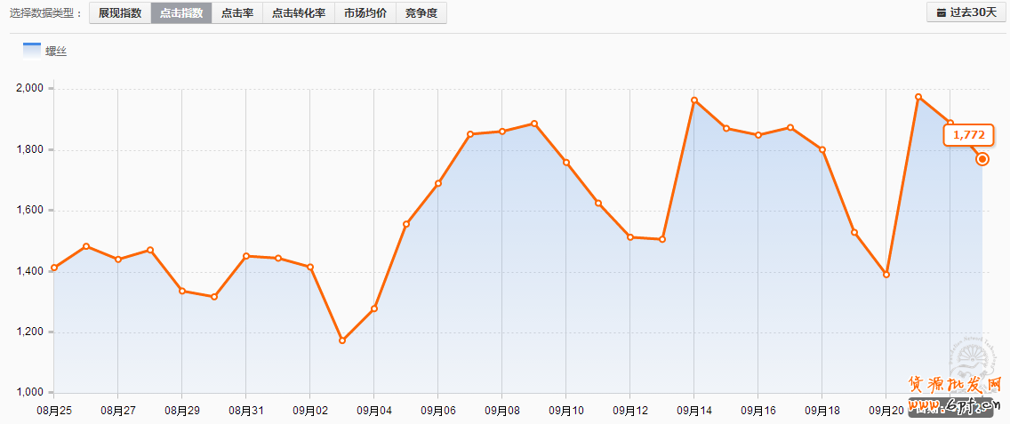 以上是店鋪的部分產(chǎn)品,店鋪主營就是五金/工具 > 緊固件,螺絲螺母類的配件,可以說該類目屬于小類目,行業(yè)競爭不比服裝或食品類行業(yè),競爭相對較小,從流量解析我們可以得知,大詞的點擊指數(shù)也只有一千多和幾百,競爭小的同時,該行業(yè)的行業(yè)搜索指數(shù)也是比較少的,那么如果在這比較狹窄的市場競爭流量,就是一個店鋪經(jīng)營成敗的先決條件。