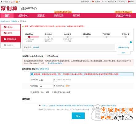 1.2015年報名淘寶聚劃算,只需要填寫庫存和價格即可提交;完善信息部分,在發布前完成即可。沒有完善信息,也不影響審核結果。