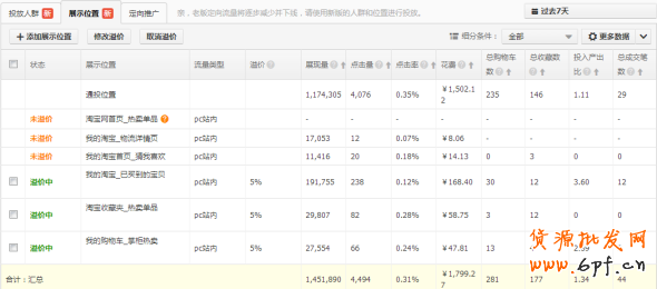 定向推廣有很多位置,其中(淘寶首頁、收藏、已買到寶貝、購物車、物流)這五個位置占據(jù)了大部分流量。