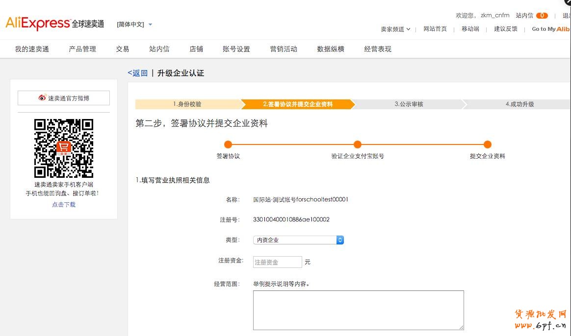 升級(jí)企業(yè)身份后,賣家可以綁定6個(gè)速賣通賬號(hào),同時(shí),部分行業(yè)的招商將僅針對企業(yè)身份的賬號(hào)。