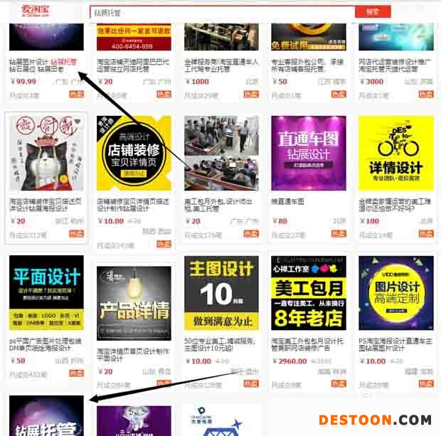 愛淘寶頁面是站外直通車和淘寶客推廣跳轉的第一個頁面,此頁面的流量大概是大幾千萬PV每天,流量巨大。在這個頁面的搜索框關鍵詞搜索顯示的搜索結果中前三行是站外直通車位,即上圖中標明熱賣的位置。其他的結果都是參加了如意投的寶貝,圖中箭頭指向的寶貝分別是站外直通車位和如意投位的第一個結果。提示一下大家,有時這個頁面的搜索結果頁不出現直通車位,不詳細說。如意投的另一個主要展示位置是站外網站淘寶聯盟的櫥窗位,比如新浪首頁。