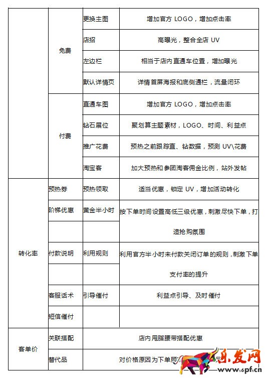 優化思路:“銷售額=UV*轉化率*客單價”這一公式的拆分,短板優化提高整體產出