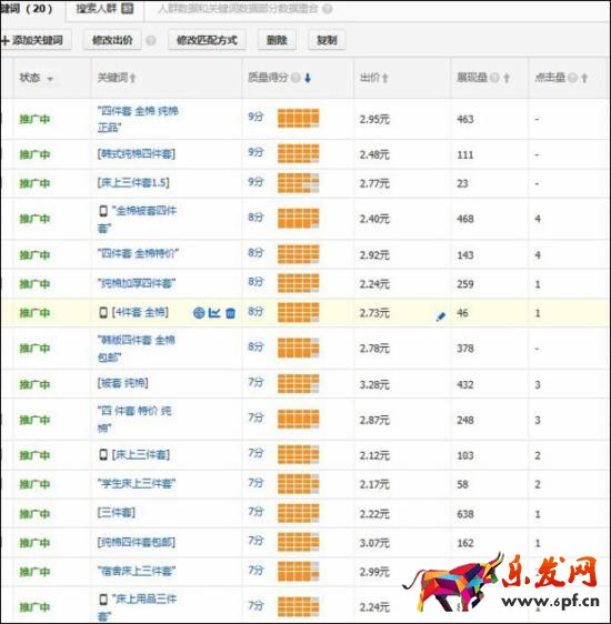 2、每天根據之前數據調整關鍵詞,刪除點擊差的詞或把展現多點擊低的詞修改為中心匹配精準匹配;