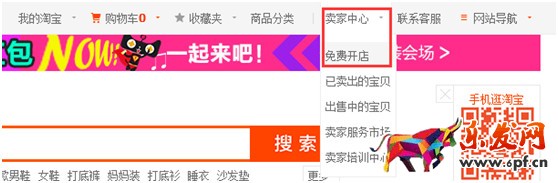 1、首先在淘寶首頁,使用上面注冊好的會員帳號登錄。具體位置在首頁右上角的【賣家中心】--【免費開店】--【輸入淘寶會員賬號】