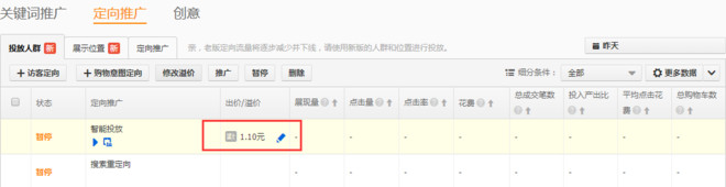 定向的價格基礎,是這個地方的智能投放出價,后續的定向位置的溢價,定向購物意圖的溢價,基礎都是在智能投放的價格基礎上的,和本身的關鍵詞出價無關,但是整體的時間折扣,整體的移動折扣,是同樣的起作用的。