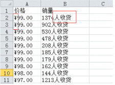 這里需要把產品價格跟銷量這2個數據提取出來,用來分析二者的關系。