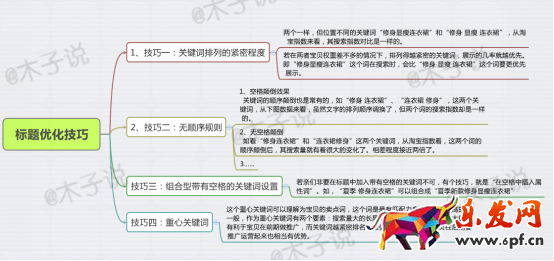 標題上可以加上促銷的字樣,比如說爆款、打折、買x送x等字樣、賣點等。創意標題是要限制字數,那么在這有限的字數里,一定要有效利用。針對的優化技巧可以看下圖: