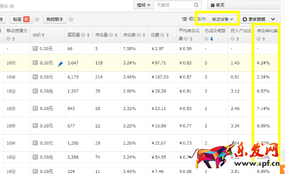 這個也是根據(jù)自己計劃的權(quán)重,但是需要注意的是,有時賣家們需要把PC端出價高一些,不然無線端沒有展現(xiàn)和點擊。