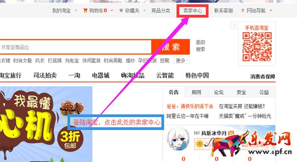 一、登錄淘寶,點(diǎn)擊賣家中心,如下圖