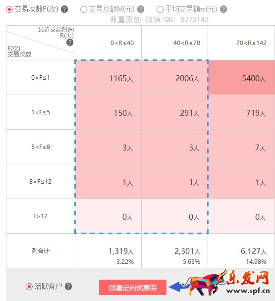 淘寶在該RMF表格里給商戶創(chuàng)建了3個(gè)標(biāo)簽:“活躍客戶”、“沉睡客戶”、“流失客戶”,并且鼓勵(lì)大家采用優(yōu)惠券等形式來(lái)進(jìn)行客戶喚醒和激活,貼心指數(shù)爆棚了有木有?有沒(méi)想到用這個(gè)來(lái)測(cè)款是不是更精準(zhǔn)?