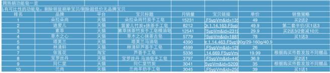 到這里聰明的已經看明白了,這些口味的自然搜索流量,無法滿足這些手工皂的基本銷量。這個時候,你會發現你可以推的只有手工皂一個詞。 這意味的,手工皂可以是任何皂,不一定是玫瑰或者是茶樹。那么我們再看以下表格,是全網銷量前十的賣家。你會發現他的銷量是非常大的。而口味就那么幾個。