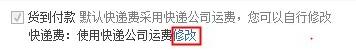 第三步:您可直接使用快遞公司運費(即運費模版上半部分您設置的內容),也可對貨到付款運費單獨設置,如下圖點擊"修改"按鈕