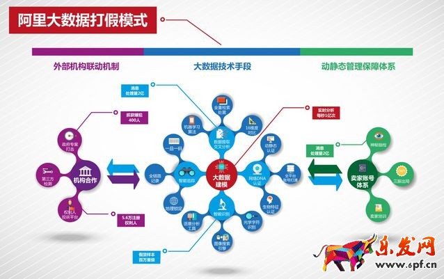 從模式上看,阿里主要是通過(guò)外部機(jī)構(gòu)聯(lián)動(dòng)機(jī)制、大數(shù)據(jù)技術(shù)手段和動(dòng)靜態(tài)管理保障體系三管齊下。