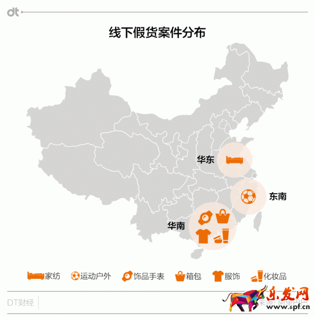 運(yùn)動(dòng)戶外則是另一個(gè)造假高度集中的行業(yè),超過(guò)6成的假冒案件來(lái)自東南地區(qū)。