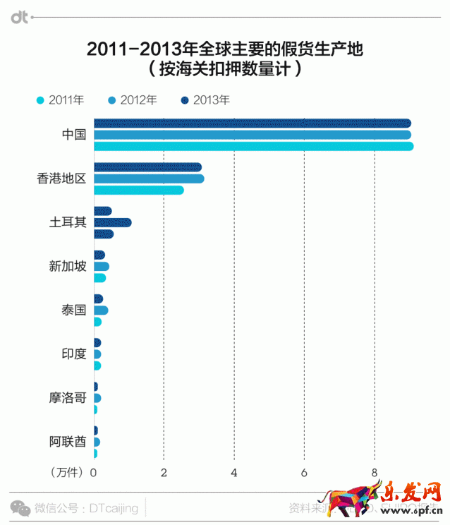 據(jù)經(jīng)濟(jì)合作與發(fā)展組織(OECD)與歐盟知識(shí)產(chǎn)權(quán)局(EUIPO)2016年4月發(fā)布的《假貨貿(mào)易影響全球經(jīng)濟(jì)》報(bào)告,2011-13年間,每年全球被扣押的假貨數(shù)量約14萬(wàn)件。