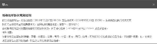 2.當(dāng)前活動將在活動期間,系統(tǒng)對商品自動執(zhí)行全國包郵(偏遠(yuǎn)地區(qū)、港澳臺、海外除外)。詳細(xì)說明如下圖所示: