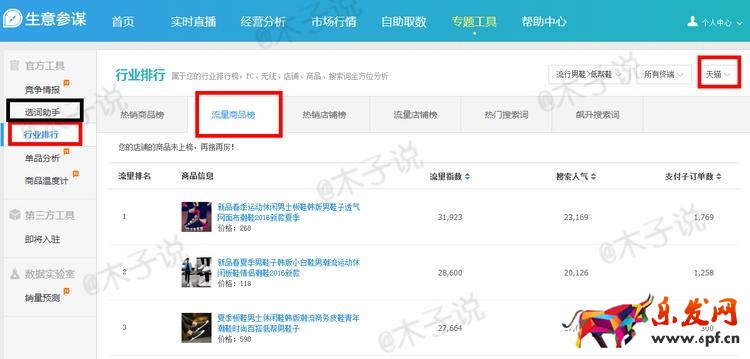 這一點的選款方向,建議是去選擇,天貓商家,跟進銷量排名,選擇款式銷量高的,這里要強調一點就是,可以先觀察銷量好的,再去看一下,綜合排名中,跟銷量好的款式重合的寶貝,或者款式相近的。就是你要主推寶貝的額款式方向。
