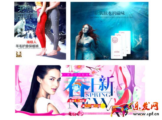 案例一,一個很平淡的設計,沒有炫酷的背景,沒有超級好看的元素,普通且平淡的海報圖,只有一張模特圖,一個紅色的背景而已,簡單的文字信息,所要表達的相關產品,化妝品。(小訣竅)當我把文字部分拿掉,我還知道是賣的是化妝品類目。