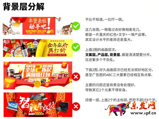 2秒原則:互聯網上的廣告圖,只有2秒的生存時間,要么被忽視,要么被關閉,要么被點擊。所有,請在兩秒內把想說的事情說完,不要裝逼耍內涵!
