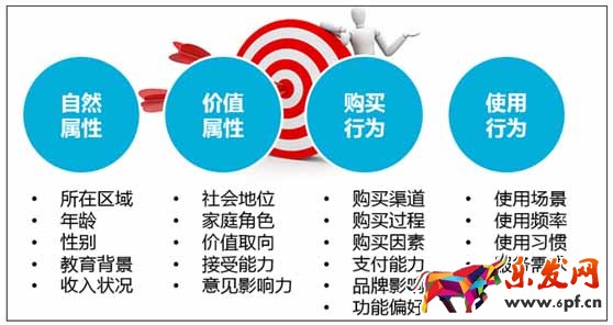那么這個圈子就要談到市場細分的概念。我們可以通過非常多的維度來對人群進行細分,比如我們在做淘寶的時候很快就會想到的:年齡維度、性別維度、收入維度、愛好維度等等,除此之外,比如說地理維度、心理維度、家庭結構維度……,非常多。并且更為關鍵的是:很多時候,為了讓我們的人群更加的精準(未來所有商業行為都應該本著精準營銷作為基本原則),我們需要兩個以上的維度來進行市場細分。比如:我們可能要根據性別(男、女)、收入(低收入、中等收入、高收入),把消費者細分成六個不同的子市場,然后再去選擇。