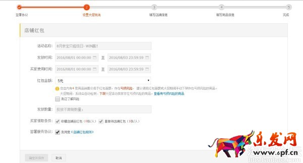4、編輯規則:活動開始前,賣家可以更改店鋪紅包面額;活動開始后,賣家無法創建、更改、刪除店鋪紅包。