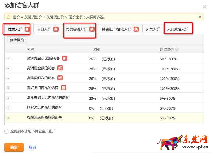 通過直通車精準搜索人群,選擇優質訪客人群和自定義人群,進行溢價,主要是目的是盡量多的覆蓋到同行店鋪的訪客,以及通過自定義人群標簽圈到自己店鋪的目標人群。
