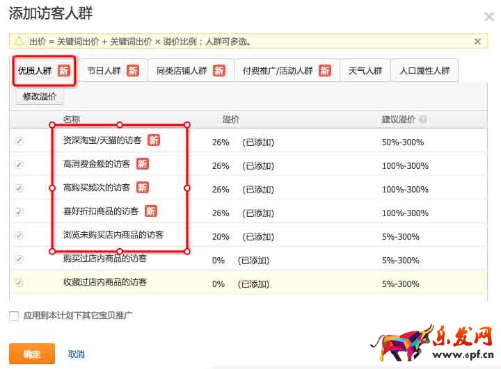 重點添加瀏覽未購買人群、相似店鋪店鋪人群、領(lǐng)了雙11紅包人群等標(biāo)簽,加大對這部分人群的溢價,營造大促氛圍。