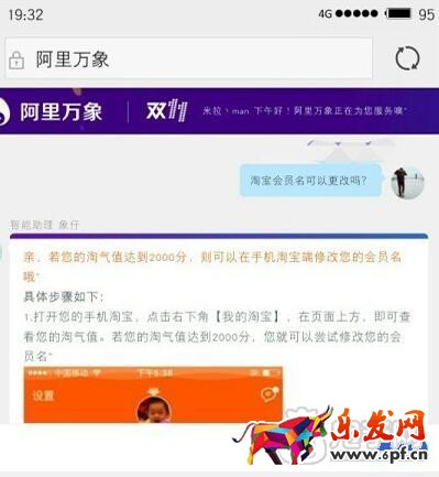 4、淘寶可以修改會(huì)員名了,賣家除外!親,若您的淘氣值達(dá)到2000分,則可以在手機(jī)淘寶端修改您的會(huì)員名喔!