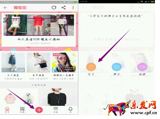 我們打開手機淘寶APP 在首頁中部的位置有好貨下面我們可以看到愛逛街的版塊(上左圖)然后點擊進去就直接進入愛逛街的手機端了(下圖左)