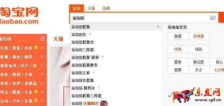 a、淘寶PC與手機淘寶搜索的下拉框詞,這絕對大流量詞以瑜伽服為例。