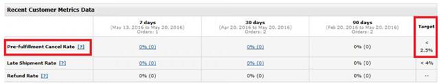 配送前取消率是在相關時間內,賣家因庫存或者產品的其他原因而主動取消了買家的訂單。這種取消訂單在所有訂單中所占的比例,則是“配送前取消率”。(如下圖示)