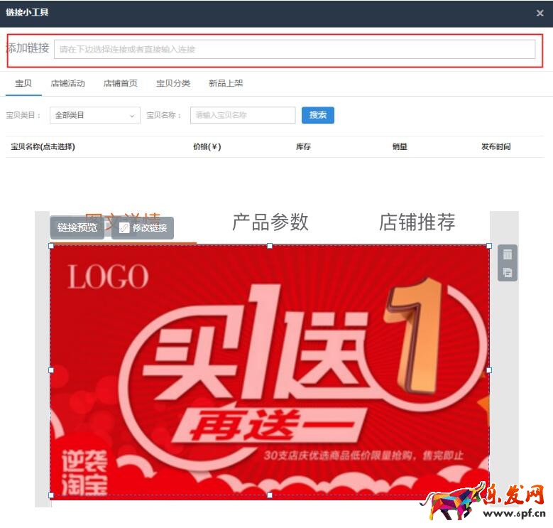添加了圖片之后,同學們看下面的那張圖,找到箭頭指出的紅色的方框,然后點擊,輸入我們用阿哈淘轉換了的優(yōu)惠券的鏈接,點擊一下確定(PC端的連接是無法使用的)。